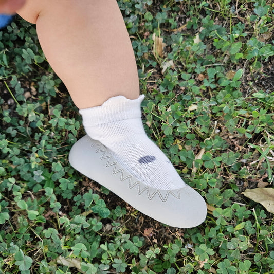 Zapato calcetín ergonómico para bebés blanco a rayas