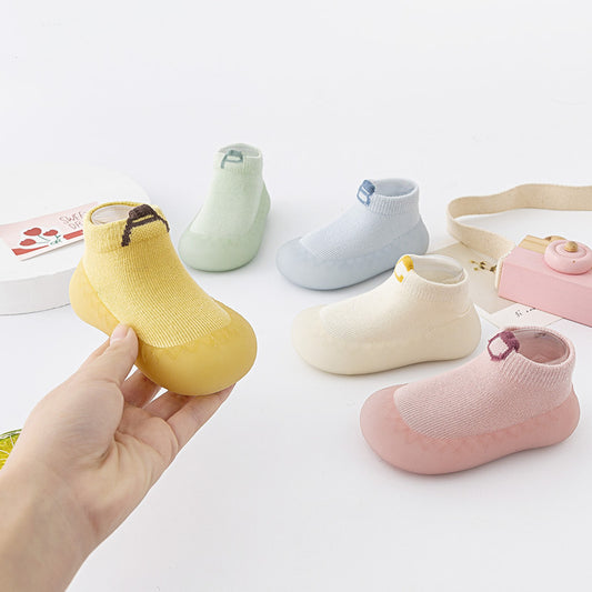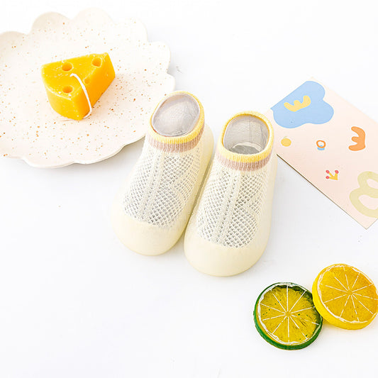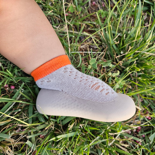 Zapato calcetín ergonómico para bebés color amarillo con blanco